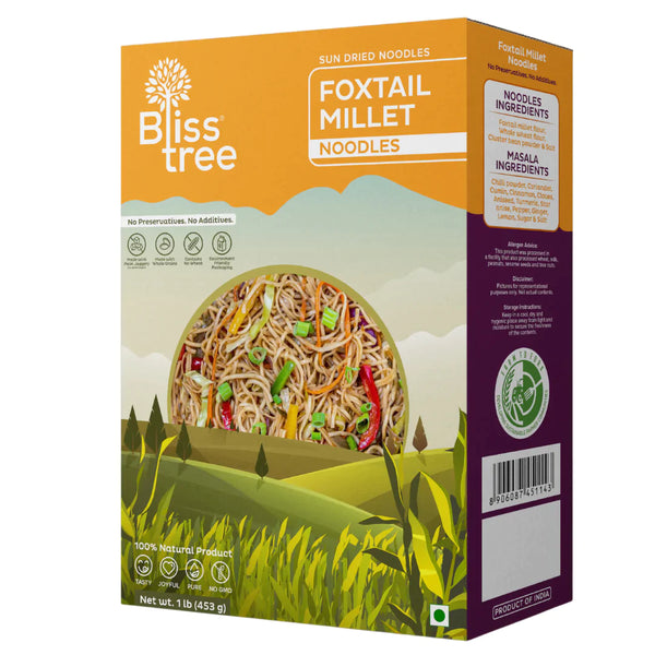 Noodle Ingredients: Foxtail Millet Flour, Whole Wheat Flour, Cluster Bean Powder & Salt